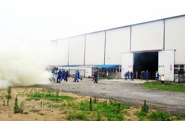 此次演練主要分兩個(gè)區(qū)域進(jìn)行,辦公樓區(qū)域和車(chē)間區(qū)域。首先是警報(bào)響起,全體員工要迅速、有秩序的走進(jìn)應(yīng)急集合點(diǎn),并由公司義務(wù)消防人員攜帶滅火器組織救火,每一位員工之間都配合的相當(dāng)默契,使消防演練活動(dòng)進(jìn)行的有條不紊。