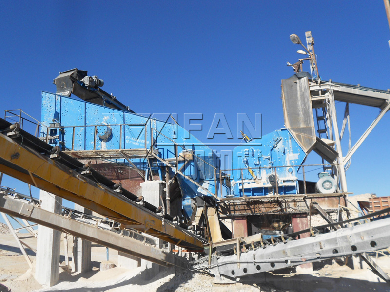 首先從山上爆破下來的石頭通過喂料機均勻地喂入顎式破碎機初步破碎,經粗碎后的半成品通過皮帶輸送機輸送至反擊式破碎機進一步破碎,二次破碎后的石料通過皮帶輸送機輸送至振動篩篩分出不同規格的石子,滿足客戶粒度要求的石子通過皮帶輸送機輸送至成品料堆,大于上層篩網尺寸的石子通過皮帶輸送機重新返回至反擊式破碎機再次破碎,形成閉路循環。